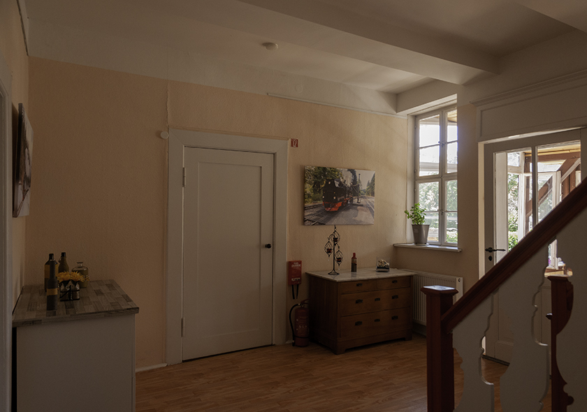 Die folgenden Fotos zeigen die gemeinsamen Bereiche unseres Hauses und das Gebäude von außen: