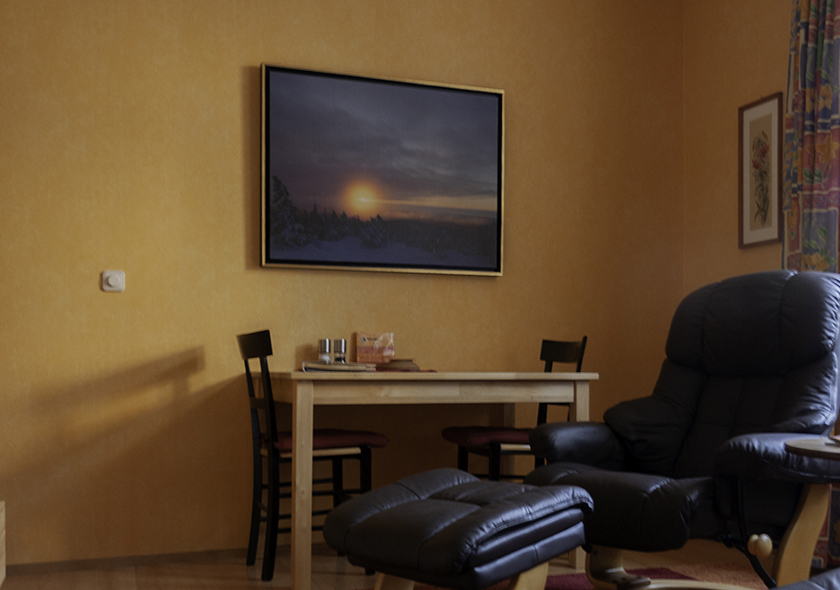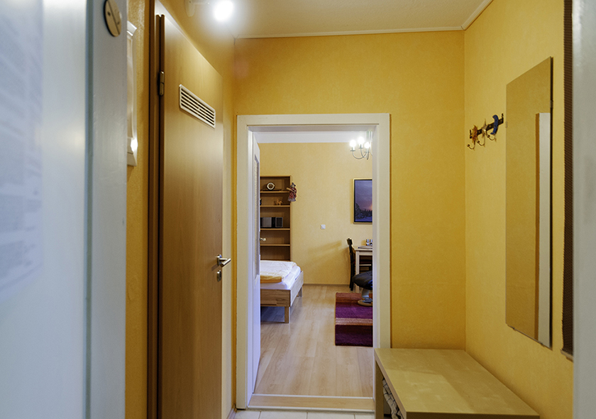 Our Holiday Apartment 1 is a studio apartment with a floor area of about 31 square metres and is equipped for two people. It is located on the ground floor on the south side of our house and is very quiet and bright. The holiday apartment consists of a hall, a small bathroom with shower and a cosy living/bedroom with a kitchenette. The double bed has two adjustable slatted frames and two comfortable mattresses.