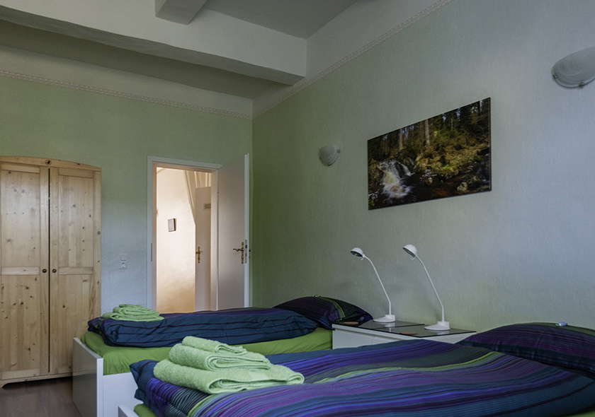 Unsere Ferienwohnung 3 befindet sich im Parterre unseres Hauses und ist ca. 71qm groß. Die Ferienwohnung ist freundlich und bequem und besteht aus einem Flur, einem großen Wohnzimmer (mit Sitzecke, Eßtisch, Holzofen, TV mit Blu-Ray-Player und Stereoanlage mit Bluetooth), einer Küche (mit Herd, Backofen, Kühlschrank, Kaffeemaschine, Toaster und Wasserkocher), einem Badezimmer mit Dusche und zwei Schlafzimmern. Ein Schlafzimmer ist mit einem Doppelbett und großem Kleiderschrank mit Spiegel eingerichtet. Ein größeres Schlafzimmer ist mit zwei Einzelbetten mit Schubladen und Kleiderschrank eingerichtet. Alle Betten sind mit einstellbaren Lattenrosten und komfortablen Matratzen ausgestattet. Bei Bedarf steht Ihnen kostenlos ein Kinderbett (ohne Bettwäsche) zur Verfügung. W-Lan können Sie kostenlos empfangen. Klicken Sie hier um eine Skizze des Grundrisses der Ferienwohnung zu sehen.